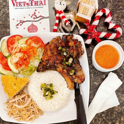 Served with Pork on Skewer, Grilled Chicken & Stir-Fried Lemongrass Shrimp & Choice of 2 Spring Rolls or 2 Fresh Rolls (Comes with Steamed Rice or Rice Vermicelli)